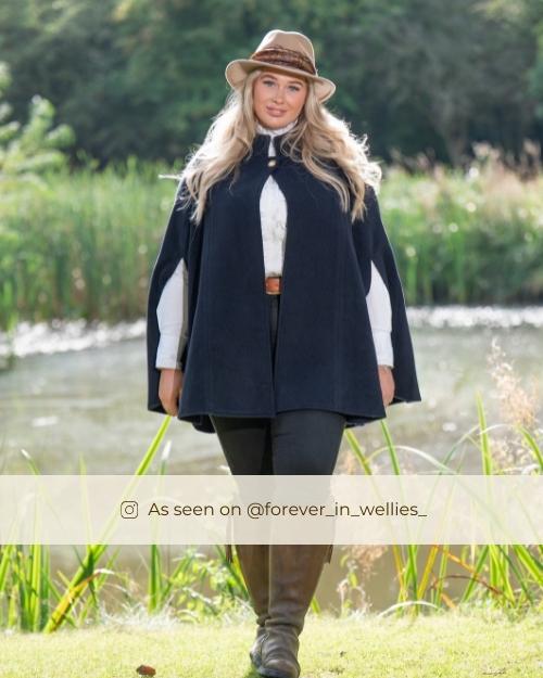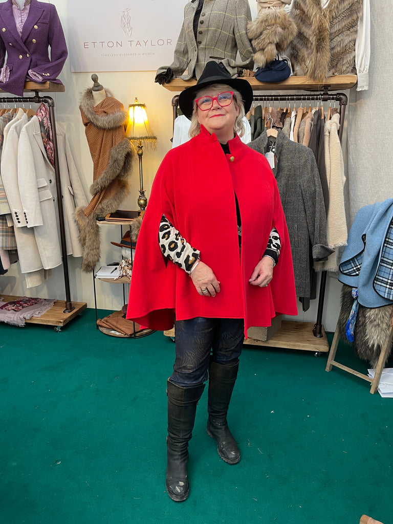 The Pippa Cape is one size and will fit sizes 8 to a size 20. Available in red, navy, black and camel.