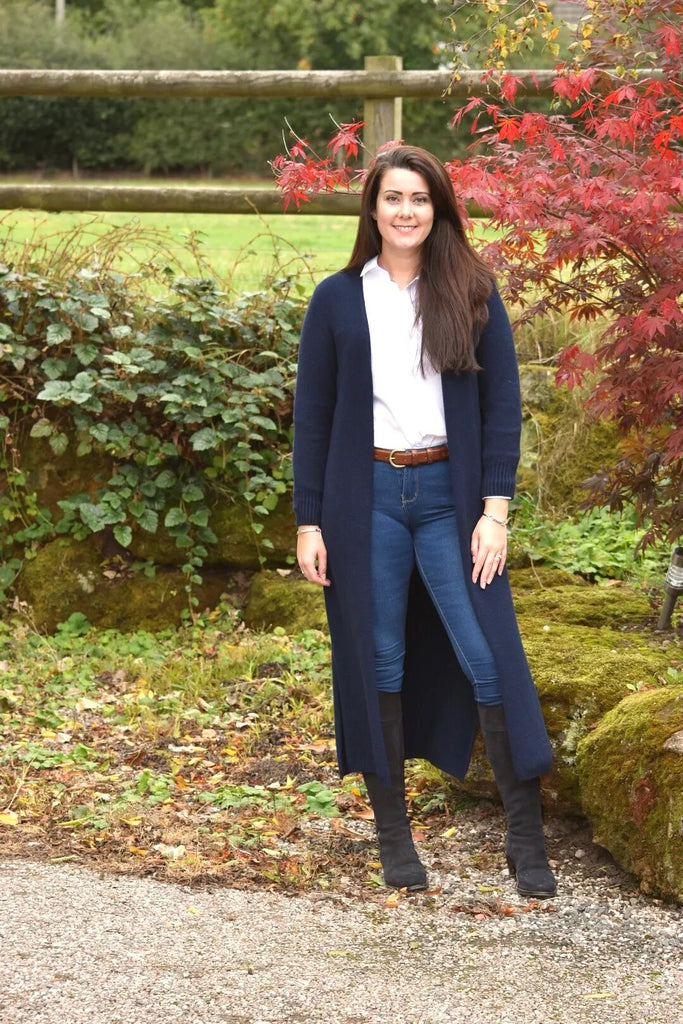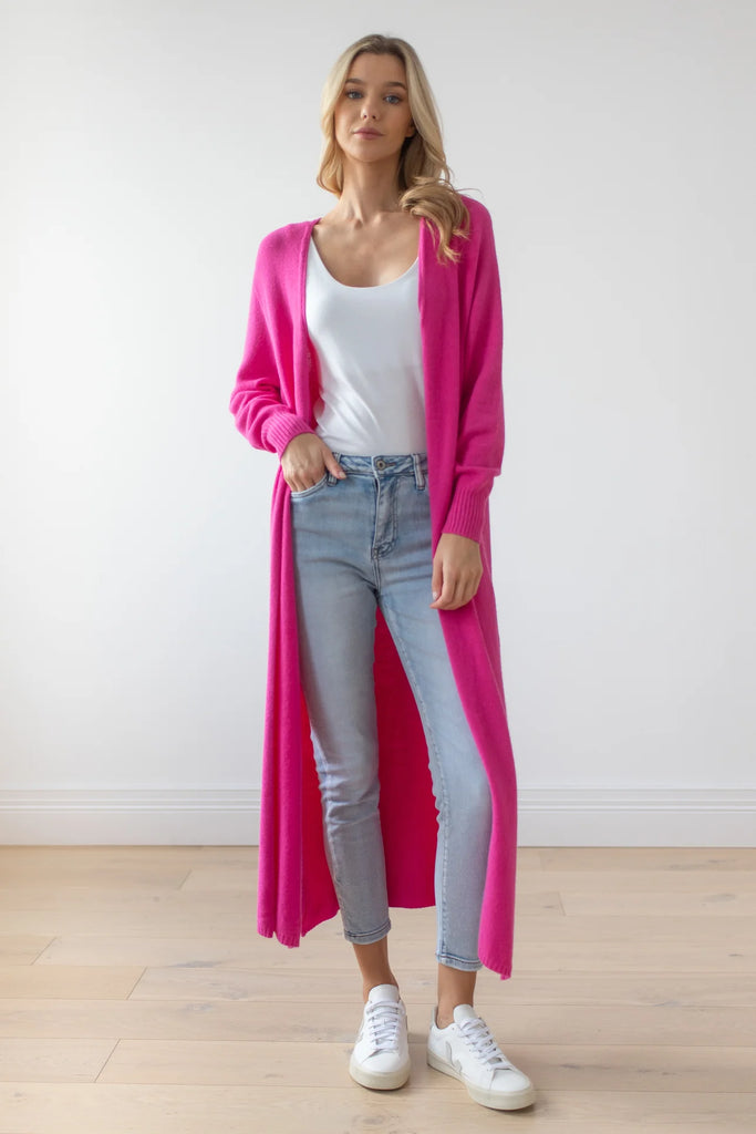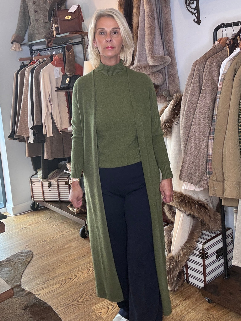 Cleo Cardigan is a very flattering ankle-length cardigan with long sleeves with side splits