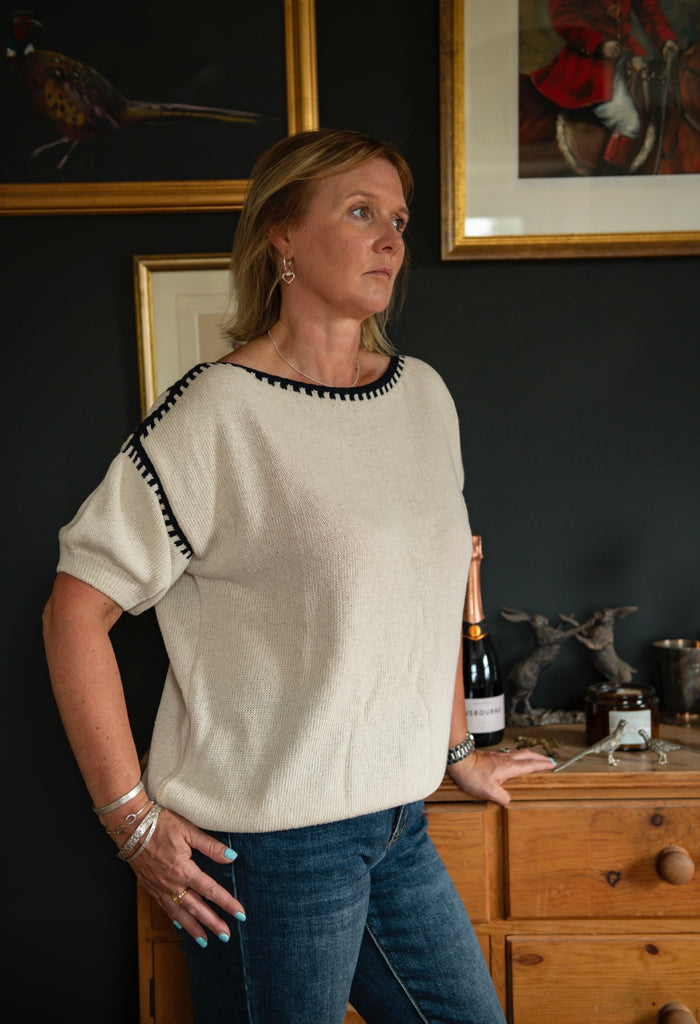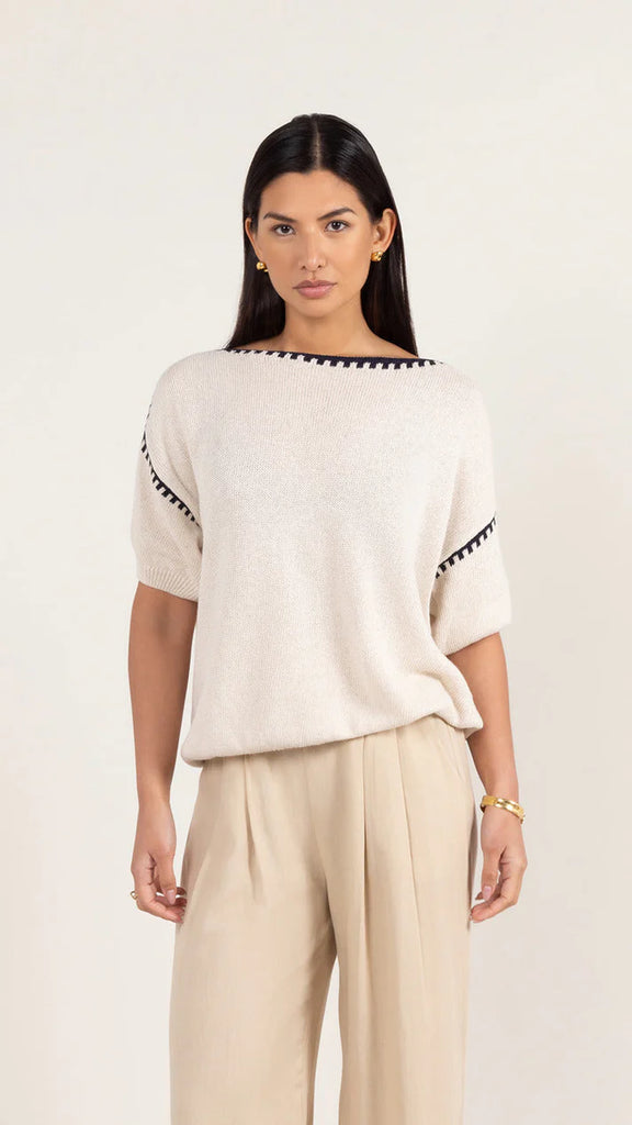 A modern wardrobe staple, the Billie Short Sleeve Cotton Knit blends effortless style with everyday comfort. Crafted from a soft cotton blend, this lightweight knit features subtle contrast stitching and a relaxed silhouette that flatters all figures.