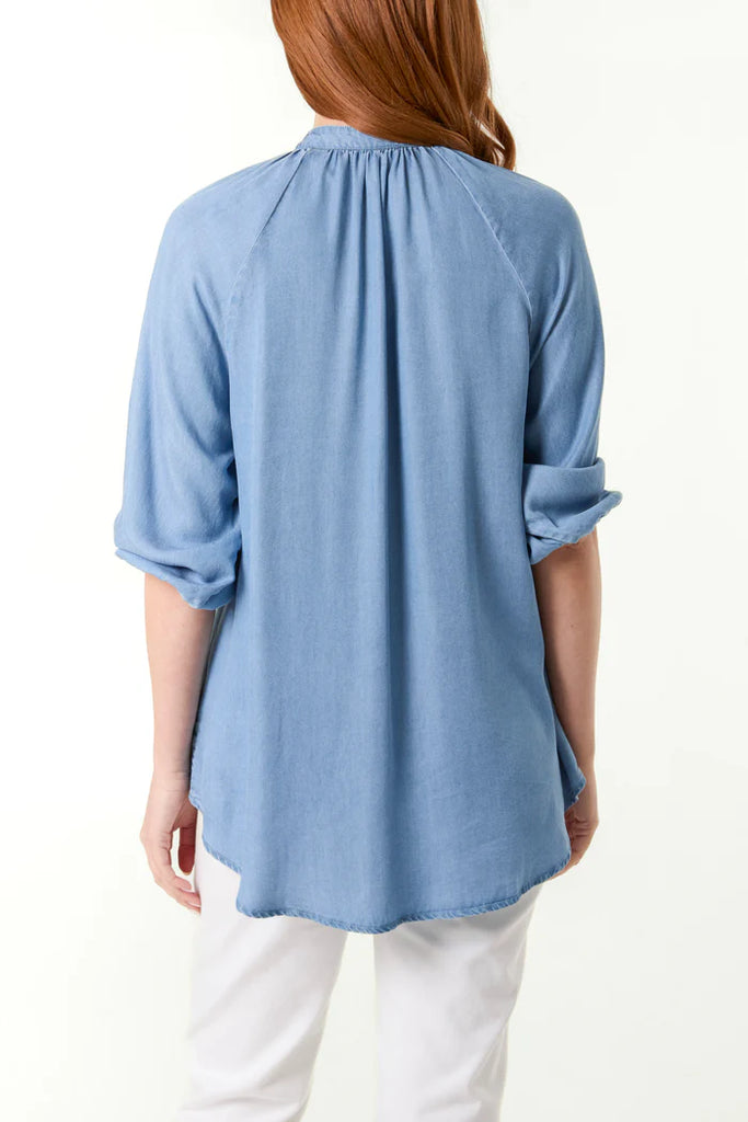 Effortlessly stylish and endlessly wearable, our Soft Denim Blouse is your go-to piece for relaxed elegance. Cut from a lightweight, breathable denim-look fabric, this blouse offers a fluid drape and a beautifully soft feel against the skin.