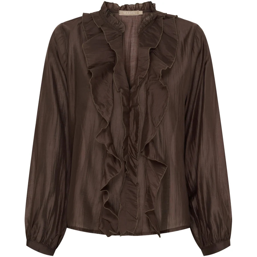 Elevate your wardrobe with the effortlessly elegant Sammi Ruffle Shirt. Designed with feminine ruffle detailing, this chic blouse brings a refined softness to any outfit. The long sleeves and flattering V-neckline create a timeless silhouette that transitions seamlessly from day to night.